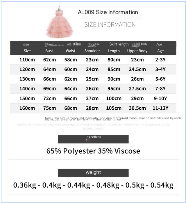 With a weight of just 0.390 to 0.570kg, this dress is not only beautiful but also lightweight, making it perfect for young girls to wear throughout the day without discomfort.