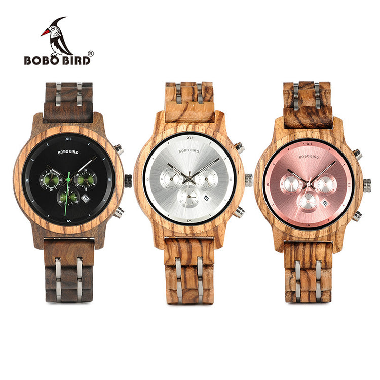 Band material: Zebra wood & stainless steel or ebony & stainless steel